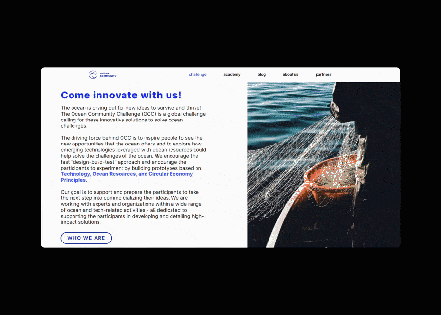 At Ocean Community they understand that the world needs sustainable and commercially viable solutions to resolve ocean challenges. Their mission is to encourage, capture and transform early stage ideas into leads that attract relevant accelerators and investors. OC enables the design and launch of solutions benefiting preservation of our oceans and sustainable utilization of ocean resources and development of ocean communities.